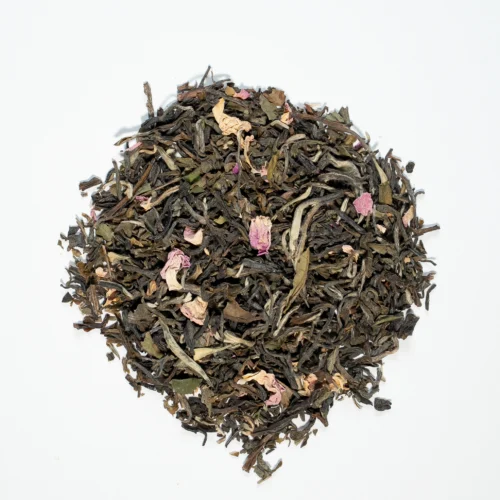 Té blanco con extractos de violeta, té de jazmín y pétalos de rosa.