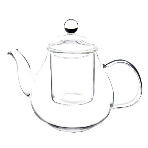 Tetera de vidrio . Tapa y colador de vidrio. Capacidad 0,7 L. La transparencia de las teteras de vidrio permiten ver cómo las hojas se desenvuelven y comienzan a teñir el agua, es elegante y discreta. También sirve para preparar Blooming Tea, para tal caso retirar el colador y dejar suspendida la bolita en agua caliente para que se desenvuelva la flor.